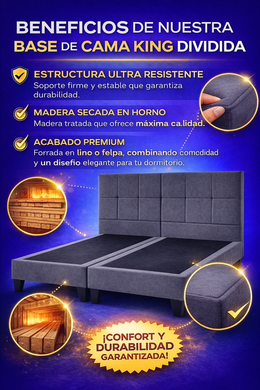 👑 BASE KING DIVIDIDA PREMIUM 🛏️ DESCANSO FIRME Y ELEGANTE